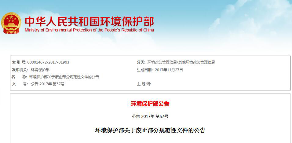 環(huán)境保護部決定廢止的規(guī)范性文件